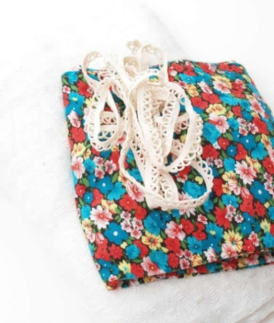 – Đăng-ten trắng bản nhỏ 0,5cm – 1cm hoặc cùng màu ren hay màu nền của vải hoa